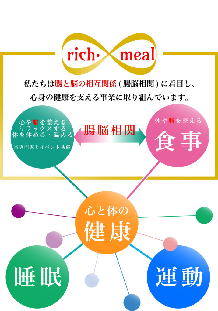 私たち株式会社rich・meal は、「心が豊かになる食事」「次世代へ伝える本物の食」の実現を目指し、心と体に良いものを知る機会を創出し、多様なかたちで提供しています。